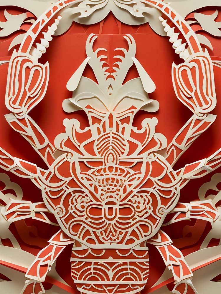 Chinesische Krebs-Papierkunst in Rot und Weiß