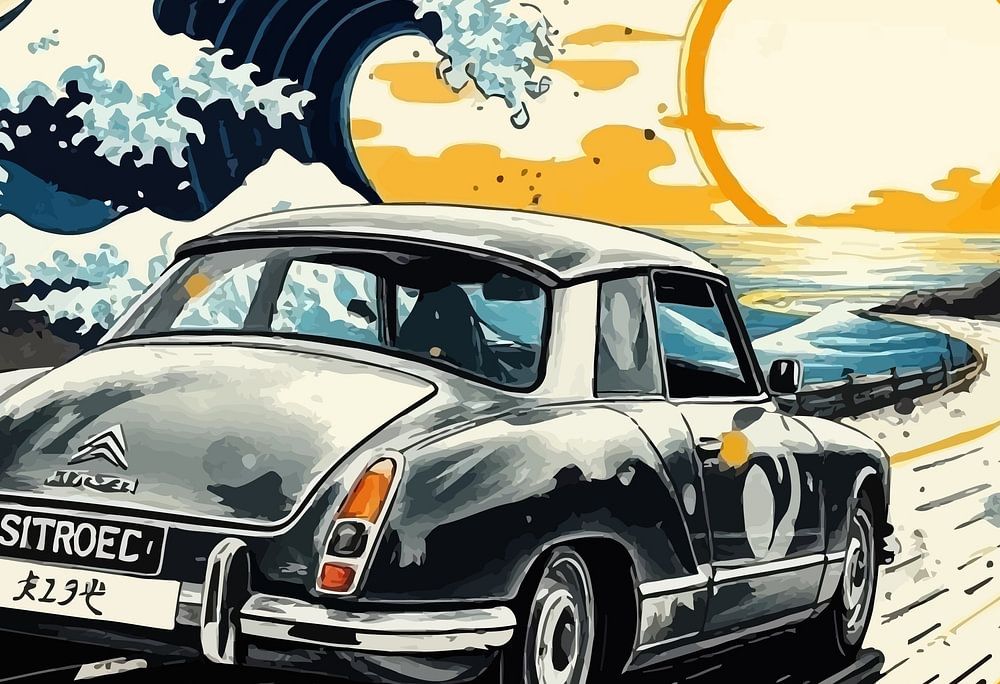 In diesem faszinierenden Sumi-e-Meisterwerk erscheint der Citroën DS als eine Vision von Anmut und Bewegung - seine fließende Silhouette ist mit kühnen, ungezähmten Tuschestrichen gemalt, die wie Wind über das Wasser gleiten. Der Künstler hat nicht mechanische Präzision, sondern Emotionen eingefangen - die Seele des Autos, in der sich Schönheit und Innovation verflechten. Jede Linie fühlt sich lebendig an, atmet mit Rhythmus und Kontrolle und strahlt doch Spontaneität und Freiheit aus. Schwarze Tuschewaschungen gehen in neblige Farbverläufe über und erinnern an die flüchtige Ruhe eines Morgennebels. Das Auto scheint zwischen Traum und Wirklichkeit zu schweben, zeitlos und vergänglich, ganz wie die Kunst des Sumi-e selbst.