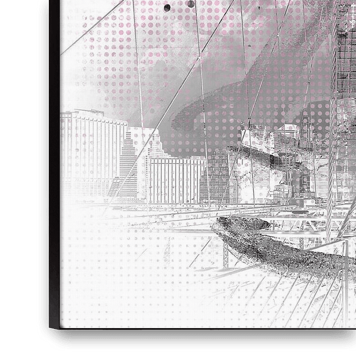 Eine klassische Ansicht von der Brooklyn Bridge aus New York City. Malerisch wirkende Passagen, moderne Farbakzente und grafische Nuancen finden eine einzigartige Kombination. Eine dekorative urbane Impression.