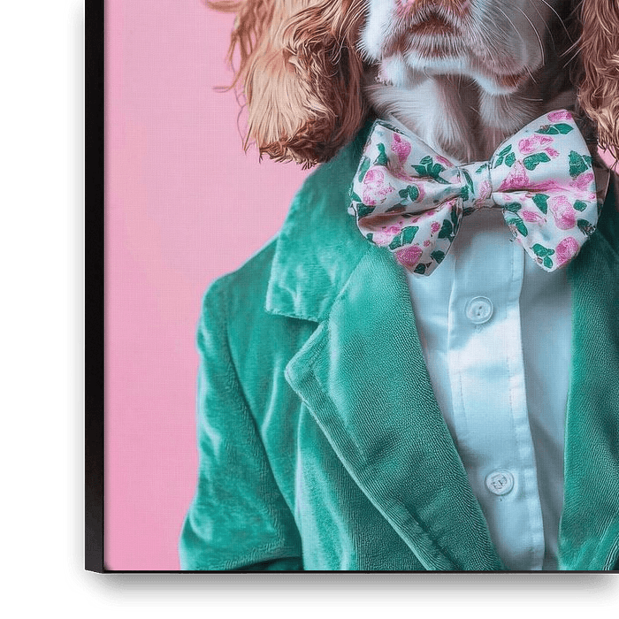 Mit seinem charmanten, viktorianischen Look und den langen, seidigen Ohren strahlt der Clumber Spaniel einen Hauch von Eleganz aus. Die stylischen Sonnenbrillen und die schicke Fliege verleihen ihm einen unwiderstehlichen, geselligen Charme, perfekt für jeden Anlass. Dieser Hund weiß, wie man Aufmerksamkeit erregt – was für ein…