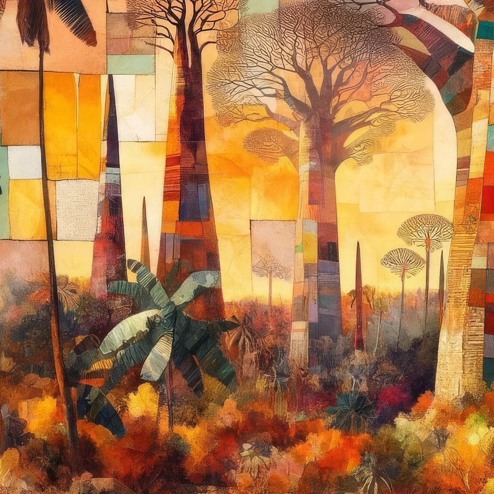 Gemeinsam mit AI erstellte Collage. Thema: Senegalesische Landschaft mit Baobab-Bäumen.
