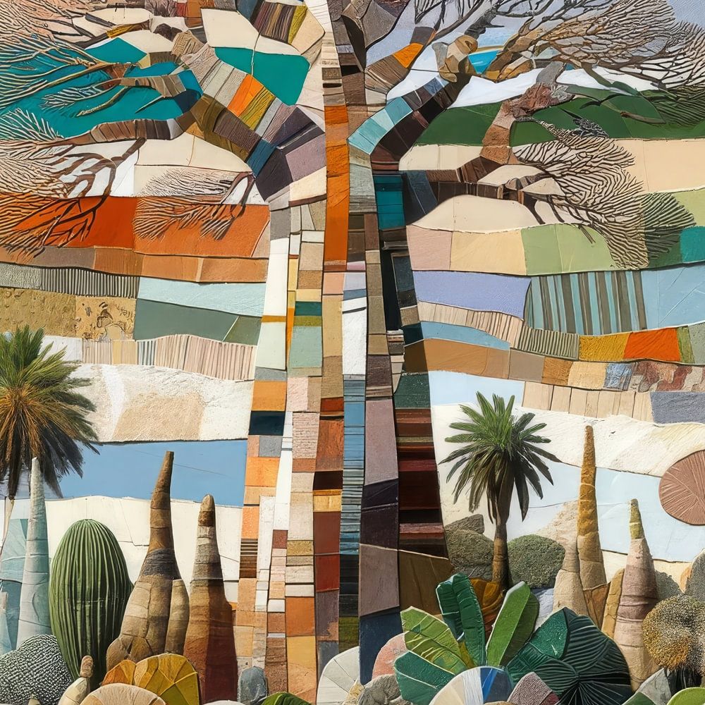 Gemeinsam mit AI erstellte Collage. Thema: Senegalesische Landschaft mit Baobab-Bäumen.