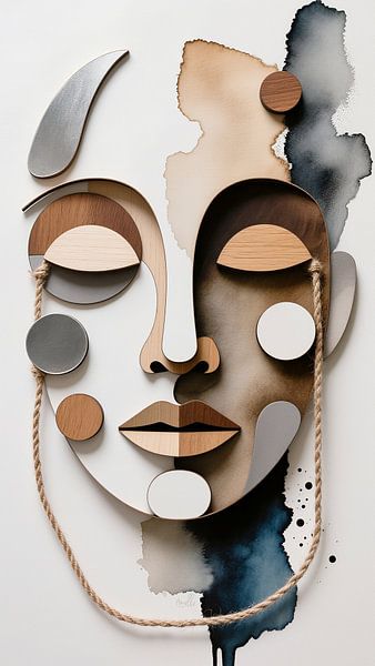 Eine ganz kleine Serie von Frauenporträts als Collagen, entstanden im Jahr 2025. Ich wollte verschiedene Materialien (Holz, Aquarell, Schnur, Tinte) in einem detailarmen, minimalistischen Stil kombinieren und sehen, wohin mich das führen würde – und hier ist eine der'entre elles que j', die mir besonders gut gefallen…