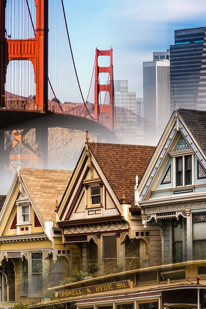 Collage San Francisco Kalifornien USA mit Golden Gate Bridge, Cable Car, Transamerica-Pyramid, Painted Ladies, Fisherman's Wharf
