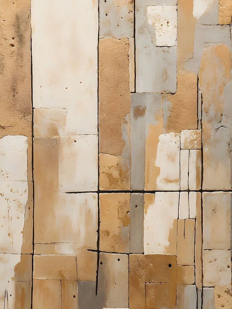 Dieses abstrakte Kunstwerk spielt mit geometrischen Formen, subtilen Linien und Texturen, kombiniert mit einer raffinierten Farbpalette aus Goldtönen, Beige, Schwarz, Weiß und Grau. Die Kombination aus glatten und rauen Oberflächen sowie die goldenen Akzente verleihen dem Gemälde eine moderne, luxuriöse Ausstrahlung. Die vertikalen und horizontalen Linien schaffen ein harmonisches Gleichgewicht zwischen Bewegung und Stabilität.