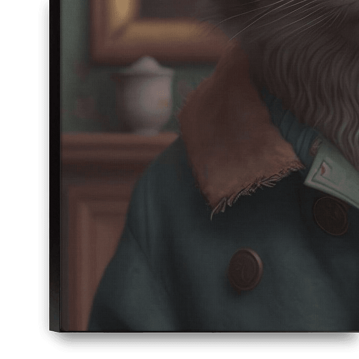 Bestelle dieses Porträt Coole Katze, Patchwork-Katze in matten Farben von Studio Allee als Reproduktion auf Leinwand, Alu-Dibond, als Poster, Fototapete oder Acrylglasbild.