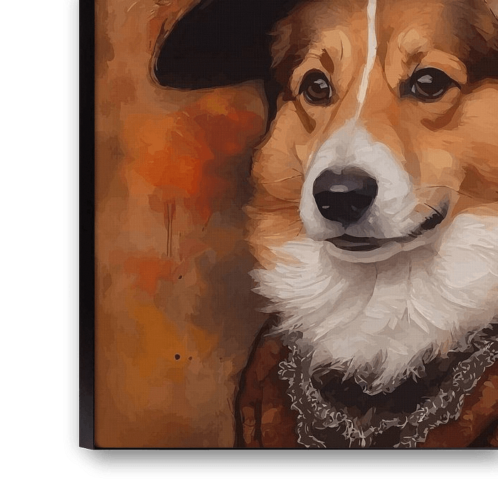 Die fröhliche Persönlichkeit des Corgi erstrahlt in diesem eleganten Porträt durch eine raffinierte viktorianische Linse. Trotz seiner kleinen Statur strahlt der Corgi großherzigen Charme und Würde aus, wobei die malerischen Texturen Wärme und Humor zum Leben erwecken. Seine selbstbewusste Haltung und seine ausdrucksstarken Augen vermitteln ein Gefühl von Kameradschaft und Freude, das das Herz des Betrachters sofort einnimmt. Die Vintage-Töne verleihen dem Bild einen klassischen Charme und lassen es wie ein kostbares Relikt aus einer skurrilen königlichen Geschichte erscheinen. Dieses Kunstwerk verbindet Verspieltheit mit Raffinesse und feiert den Corgi als treuen Freund und charmantes Symbol des Glücks. Sammler werden die emotionale Erzählung dieses Werks bewundern, in dem jeder Pinselstrich eine Rasse ehrt, die für ihre Fröhlichkeit und ihren bewundernswerten Geist geliebt wird. Es ist mehr als nur ein Porträt - es ist eine entzückende Erinnerung an die Freude und Hingabe, die ein Hund in ein Heim bringt, bewahrt in zeitloser künstlerischer Schönheit.