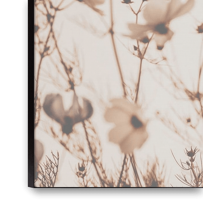 Bestelle dieses Blumen-Wandbild Cosmea Sommergarten Beige Toffee von Monika Strigel als Reproduktion auf Leinwand, Alu-Dibond, als Poster, Fototapete oder Acrylglasbild.