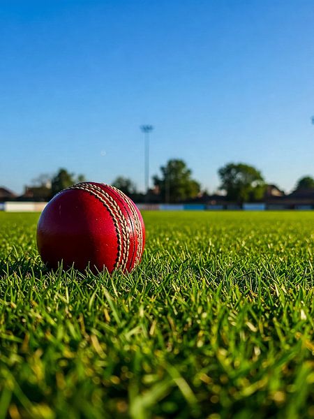 Dieses klare Sportdesign zeigt einen roten Cricket-Ball, der neben einer hellen Begrenzungslinie liegt, was eine visuell beeindruckende und professionelle Komposition ergibt. Es steht für Präzision, Konzentration und das hohe Niveau der Fähigkeiten, die beim Cricket erforderlich sind. Das Motiv ist perfekt für Cricket-Liebhaber, Spieler…