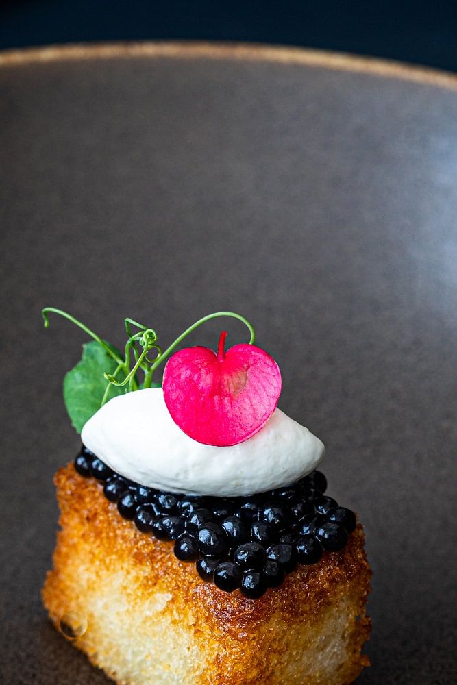 Ob es wirklich lecker ist, will ich nicht sagen, aber es ist sehr schön zu fotografieren! Crème fraîche und Apfelblüte