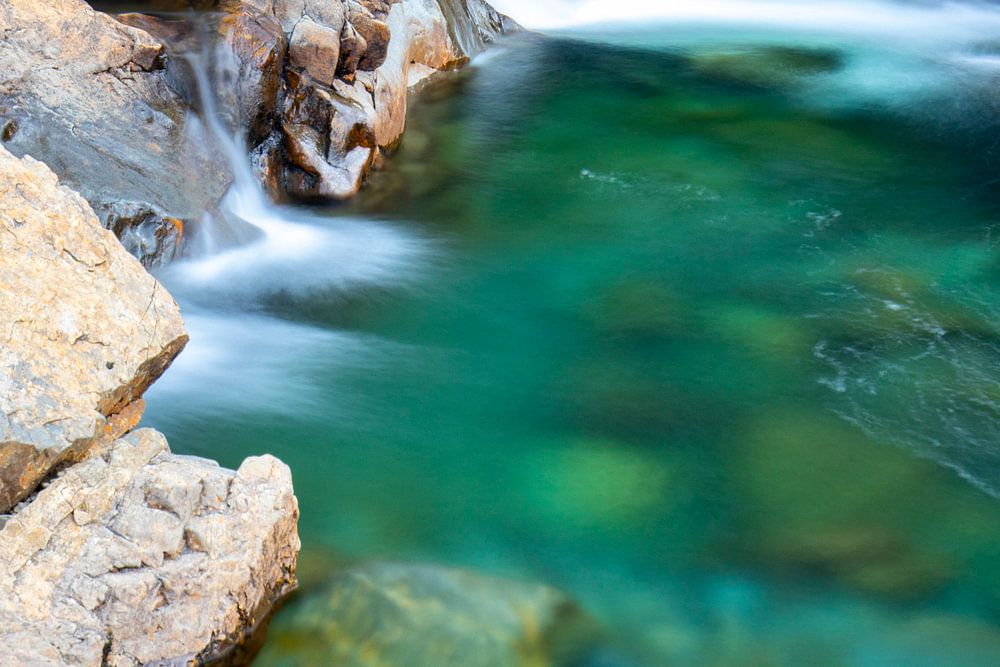 Dit kristal heldere water is gefotografeerd bij de Fairy Pools op het eiland Skye in Schotland. Het water is super helder en prachtig mooi om te zien. Deze foto is gemaakt met een lange sluitertijd waardoor het water mooi glad is geworden.
