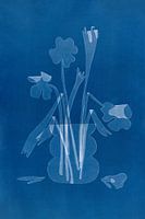 Cyanotypie von Blumen in einer Vase. Entstanden als Collage.