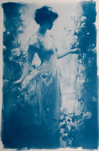Bestelle das Foto Cyanotypie Jahrgang Dame von W. Vos als Reproduktion auf Leinwand, Alu-Dibond, als Poster, Fototapete oder Acrylglasbild.