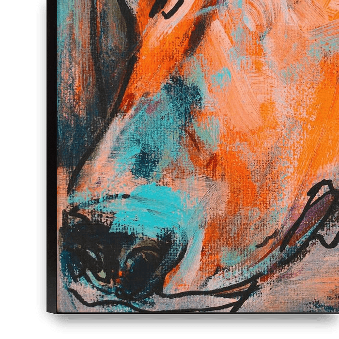Ihre gewählte Kunst auf Leinwand, gespannt in einem Aluminiumrahmen. Schnell und einfach austauschbar für eine frische Ausstrahlung und ganz nach Ihren Wünschen.