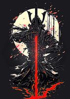 Bestelle das digitale Kunst Bild Dämon Samurai Flammen Kunst von Shieru Art als Reproduktion auf Leinwand, Alu-Dibond, als Poster, Fototapete oder Acrylglasbild.