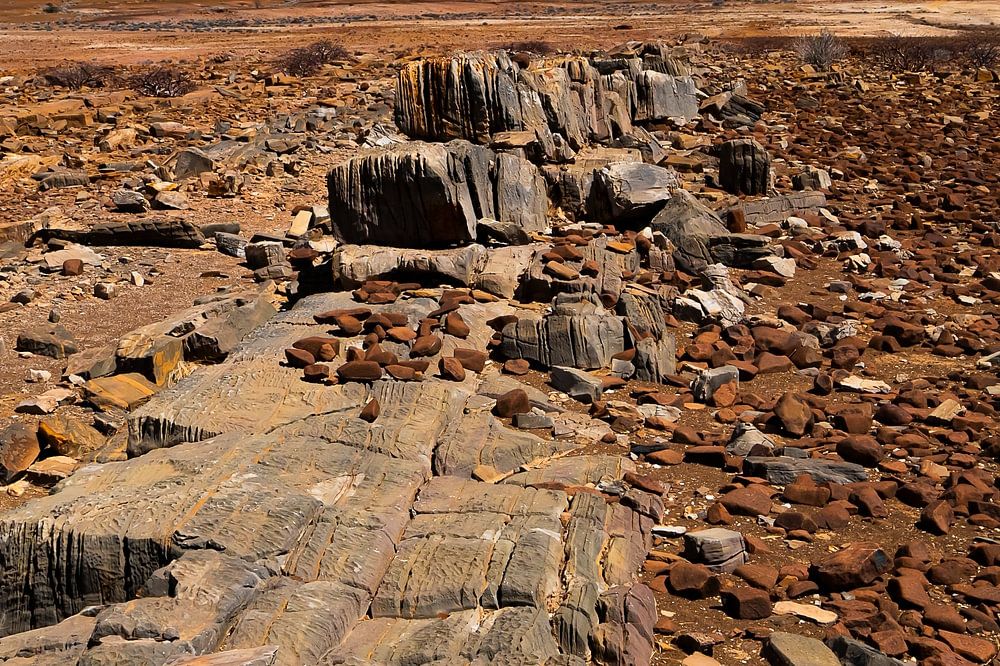 Bei unserem Off-Road-Trip durch Namibia wanderten wir durch diese erstaunliche Wüstenlandschaft mit ihren rostfarbenen Felsformationen, in der man kaum jemandem begegnet.