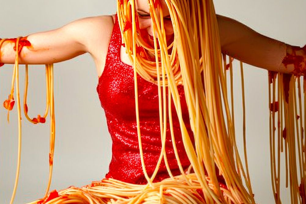 surreales Bild einer Frau mit Spaghetti