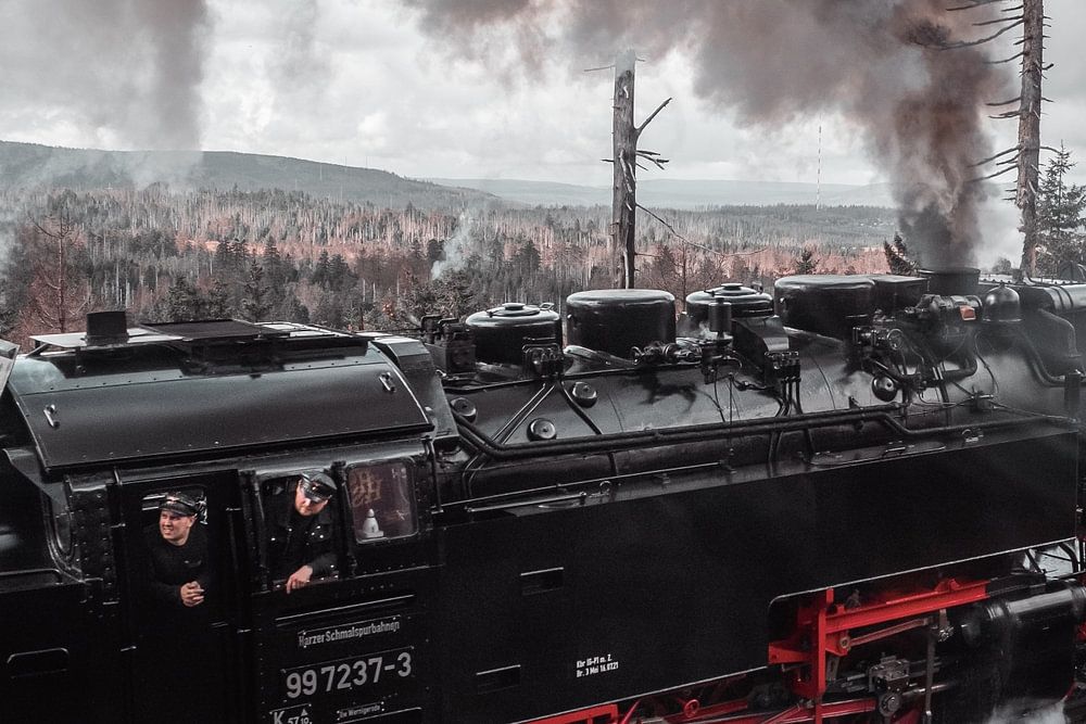 Dampflokomotive auf der Brochenbahn in Deutschland auf dem Weg zum höchsten Punkt in Nordduisland über die Schmalspurbahn.