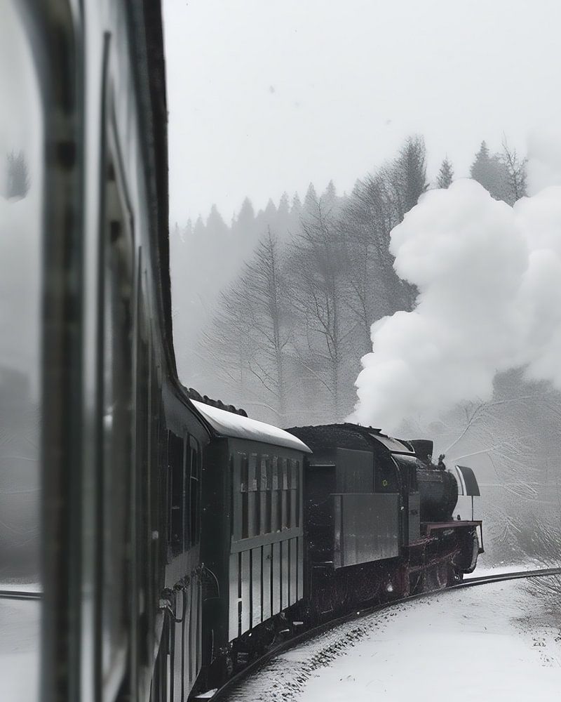 Dampflokzug durch Winterlandschaft
