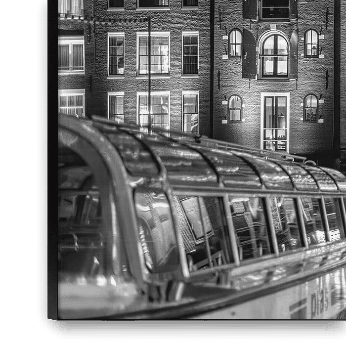 Bestelle das Foto Damrak Amsterdam schwarz auf weiß von Michiel Buijse als Reproduktion auf Leinwand, Alu-Dibond, als Poster, Fototapete oder Acrylglasbild.