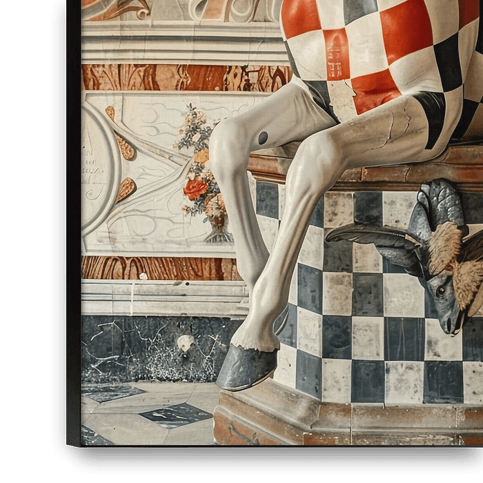 Ihre gewählte Kunst auf Leinwand, gespannt in einem Aluminiumrahmen. Schnell und einfach austauschbar für eine frische Ausstrahlung und ganz nach Ihren Wünschen.