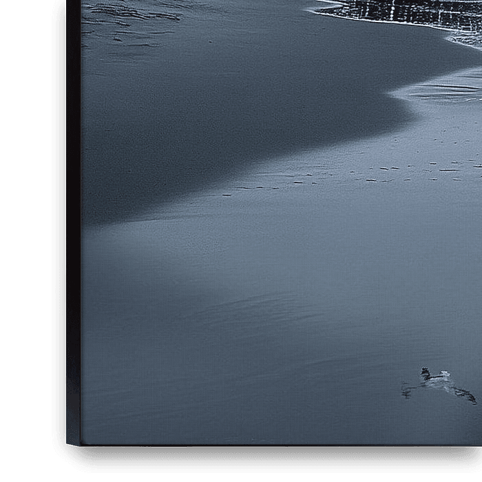 Bestelle dieses abstrakte Wandbild Das Flüstern der dunklen Brandung | Wo Meer und Himmel sich in Stille umarmen von Karina Brouwer als Reproduktion auf Leinwand, Alu-Dibond, als Poster, Fototapete oder Acrylglasbild.