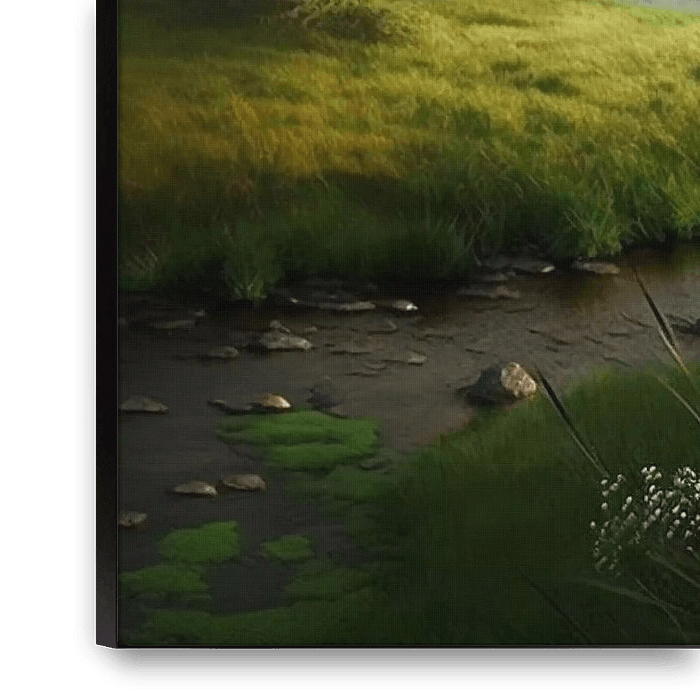 Bestelle dieses Landschafts-Wandbild Das Flüstern des Flusstals von Vythryd Arts als Reproduktion auf Leinwand, Alu-Dibond, als Poster, Fototapete oder Acrylglasbild.