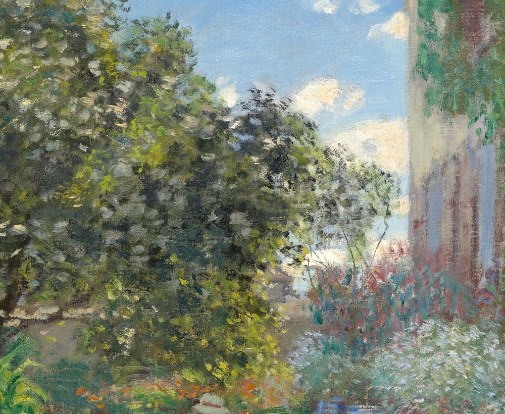 Claude Monet lebte mit seiner Familie von 1871 bis 1878 in Argenteuil, außerhalb von Paris. Hier stellt er seinen fünf- oder sechsjährigen Sohn Jean dar, der mit einem Reifen spielt, und seine Frau Camille, die in der Tür ihres mit Weinreben bewachsenen Hauses steht. Das angenehme Wetter und der gepflegte Garten, ein Vorläufer des berühmten Gartens des Künstlers in Giverny, verleihen diesem Gemälde ein Gefühl von Ruhe und Wohlbefinden. In dieser Zeit ist Monet finanziell abgesichert, da er kürzlich seine Werke an den Pariser Kunsthändler Paul Durand-Ruel verkauft hat.