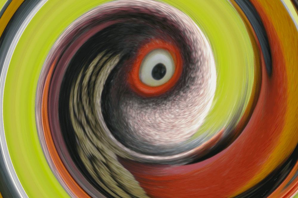 AI-bearbeitetes Foto eines Vogels. Eigentlich ist nur noch das Auge zu erkennen. Bei diesem Bild habe ich mich gefragt, was vorher da war, das Huhn oder das Ei....