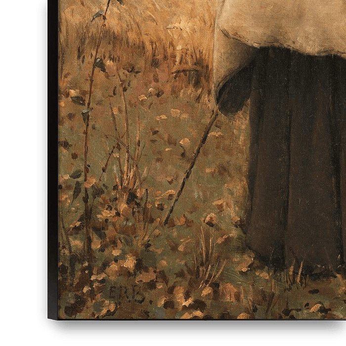 Der Titel dieses Gemäldes erinnert an den englischen Maler John Everett Millais, in dessen Werk manchmal Frauen in Kostümen zu sehen waren, die dem Kostüm dieser jungen Schäferin ähneln.