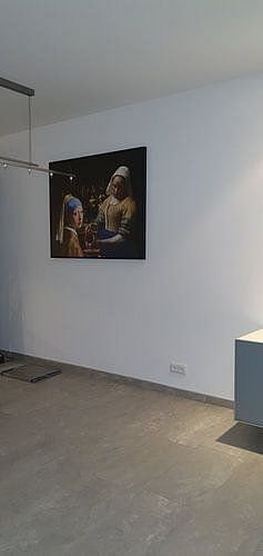 Bestelle diese Malerei Das Mädchen mit dem Perlenohrgehänge - das Milchmädche - Johannes Vermeer von Lia Morcus als Reproduktion auf Leinwand, Alu-Dibond, als Poster, Fototapete oder Acrylglasbild.