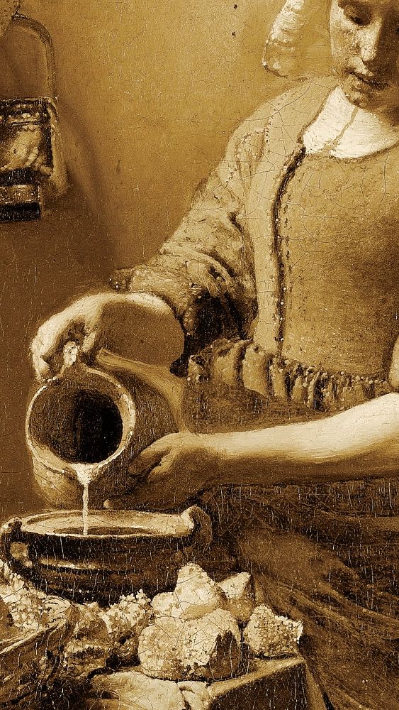 Das Milchmädchen (vertikal beschnitten) Das Milchmädchen ist ein Gemälde des niederländischen Meisters Johannes Vermeer. Dies ist eine elegante Version mit warmen Sepia-Farben, die einen schönen klassischen Look erhalten hat. Auch in Delfter Blau erhältlich - Arbeitscode: 1042447 Auch in elegantem Schwarz und Weiß erhältlich - Arbeitscode: 1042869