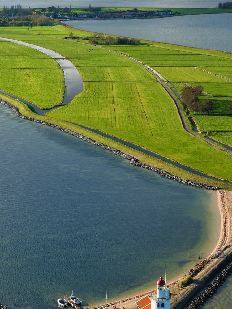 Der Paard van Marken mit den Umrissen des nie fertig gestellten Goudriaankanaals (1826), der Kanal hätte hier Schleusen und würde ins IJsselmeer münden.© 6 Nov 2017 Marco van Middelkoop/Aerophoto-Schiphol.