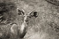 portrait eines kudu in pilanusberg, südafrika. fotografiert mit 300mm und in leichtem sepia-ton ausgeführt.