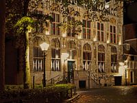 Rathaus von Veere an einem regnerischen Abend mit glänzenden Pflastersteinen
