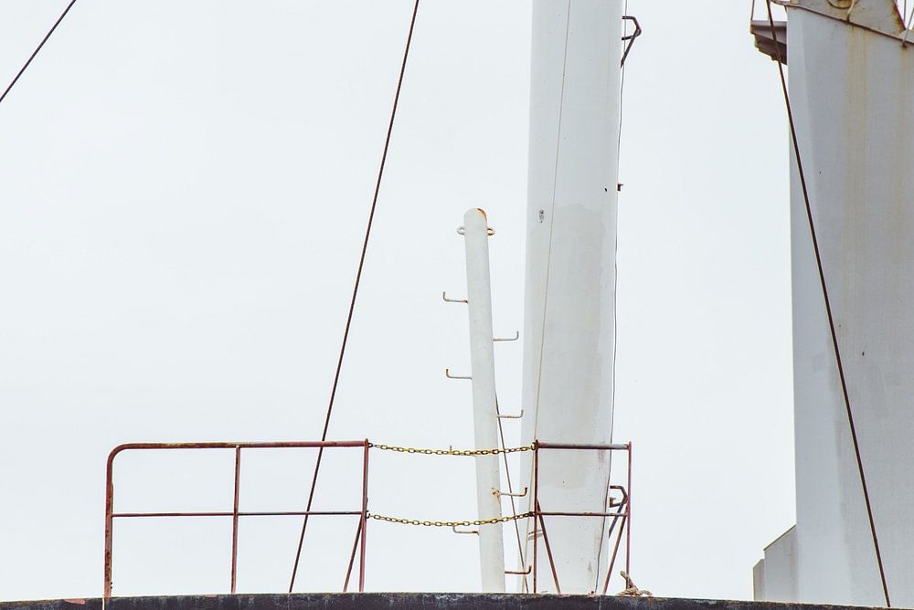 Das Schiff liegt still im Wasser, trüb von Salz und Zeit. Dicke, schwere Festmacherleinen reichen von den Pollern am Kai bis zum Stahl des Schiffes. Sie tropfen noch immer aus dem Wasser, sind steif und verwittert. Der bedeckte Himmel wirft harte Schatten auf das Deck und hebt die Rostflecken auf dem Rumpf wie Narben hervor. Rote, orangefarbene und braune Flecken markieren den Stahl, wo die Farbe abgeblättert ist. Alles atmet Arbeit: das Geräusch eines ruhenden Hafens, aber niemals still. Die Kräne an Deck stehen bereit, um die Ladung in die Laderäume zu hieven.