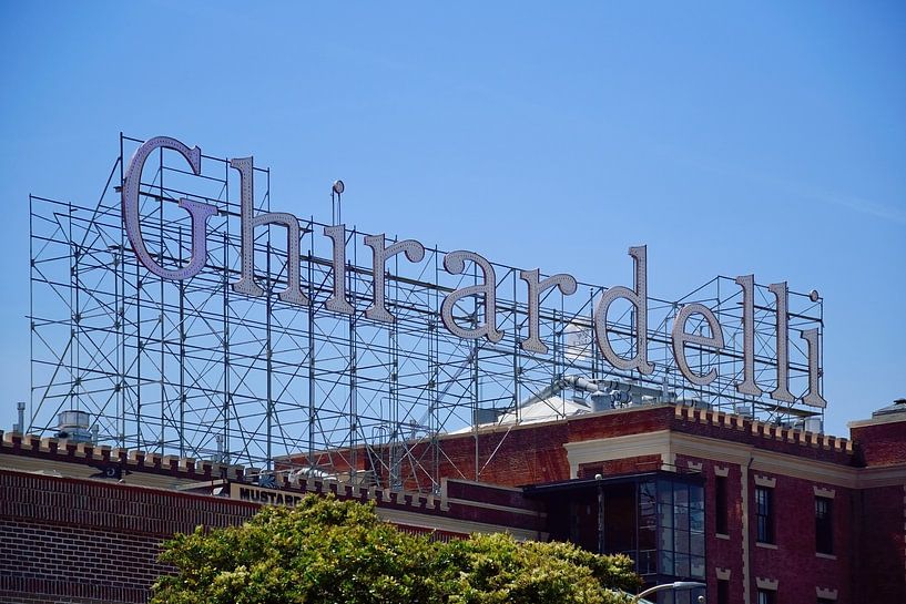Bestelle das Foto Das Schild am Ghirardelli Square von Frank's Awesome Travels als Reproduktion auf Leinwand, Alu-Dibond, als Poster, Fototapete oder Acrylglasbild.