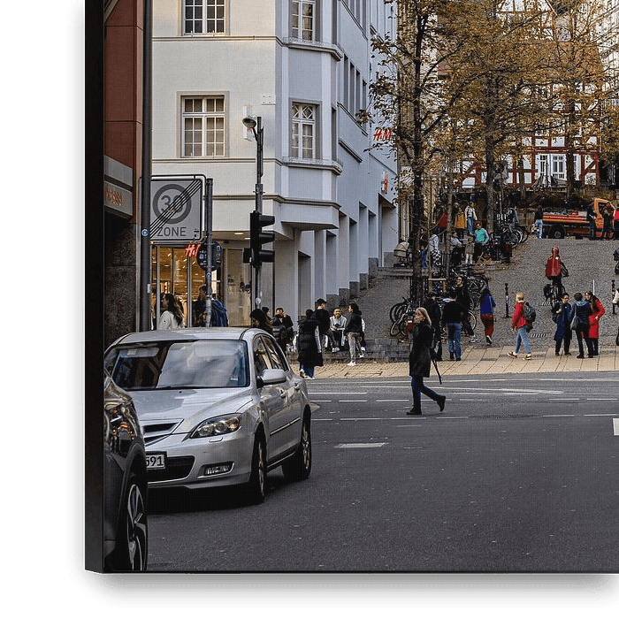 Ihre gewählte Kunst auf Leinwand, gespannt in einem Aluminiumrahmen. Schnell und einfach austauschbar für eine frische Ausstrahlung und ganz nach Ihren Wünschen.