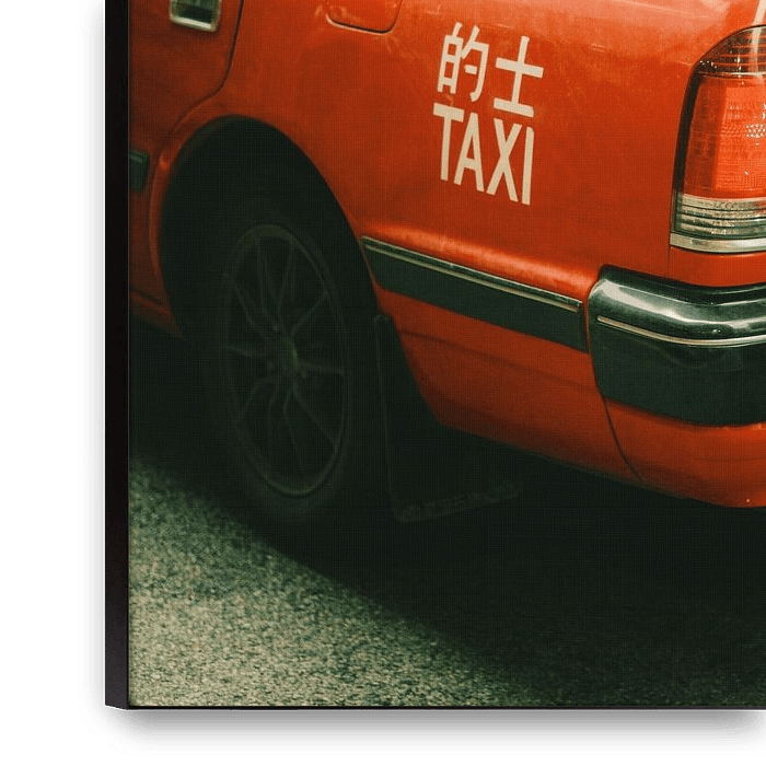 Bestelle das Foto Das klassische rote Taxi – Ein Symbol Hongkongs von NZME Photography als Reproduktion auf Leinwand, Alu-Dibond, als Poster, Fototapete oder Acrylglasbild.