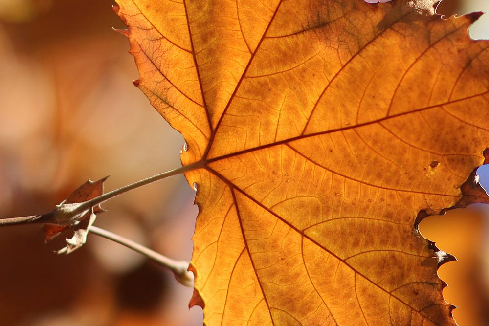 Ein Herbstblatt mit Gegenlicht.