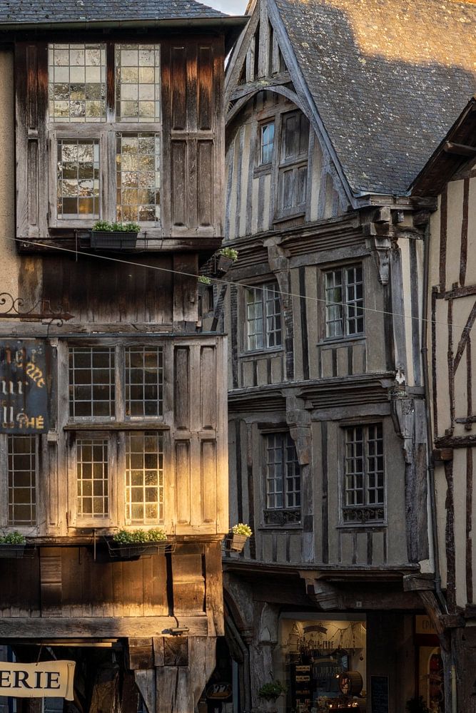Die Fachwerkhäuser am Place des Merciers in Dinan sind schön anzusehen und sehr alt.