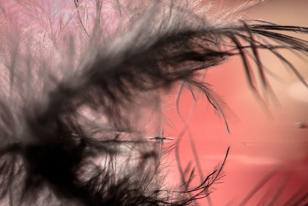 Daunenfeder im Wasser mit Reflexion Makrofotografie