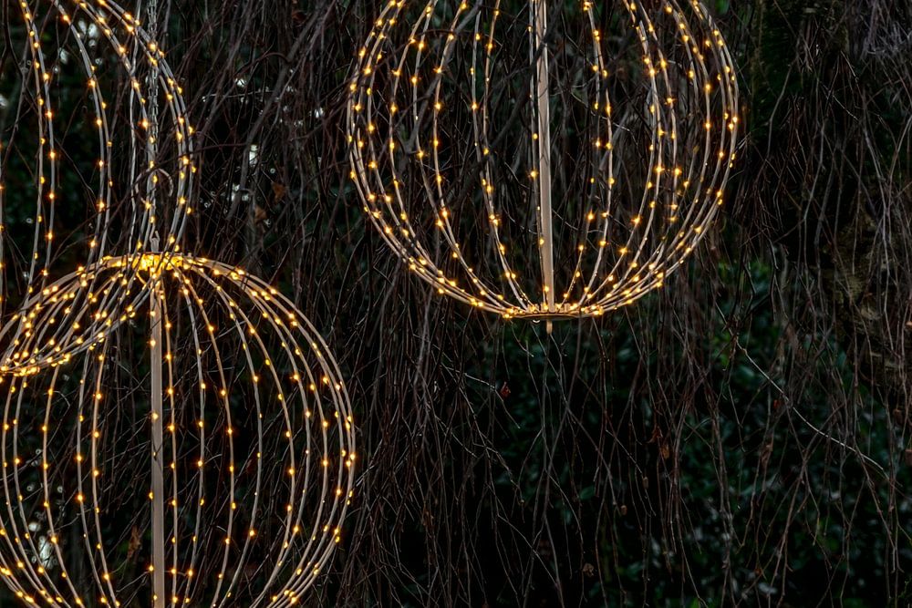 Niedliche Leuchtkugeln in einem Baum: Bei einem Spaziergang bin ich auf diese niedlichen Leuchtkugeln gestoßen.