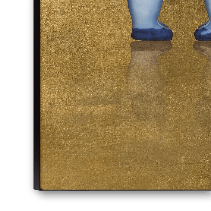 Delfter Blau küssendes Paar, Herren. Platziert auf einem goldenen Hintergrund für einen modernen Look. Es lebe die Liebe und unsere Freiheit!
