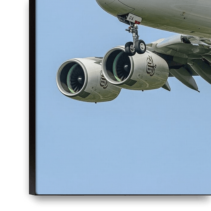 Ein Emirates Airbus A380, fotografiert kurz vor der Landung auf der Landebahn in Zwanenburg.
