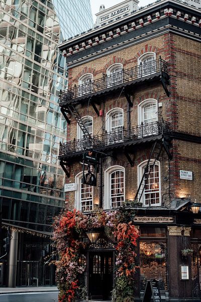 Dieses Werk ist eine Hommage an eine der beliebtesten Ikonen Londons: The Albert in der Victoria Street. Das Bild fängt den auffälligen Kontrast zwischen der reichen viktorianischen Architektur, einschließlich schmiedeeiserner Balkone und leuchtender Laternen, und der glatten, spiegelnden Glaswand eines modernen Wolkenkratzers ein. Das…