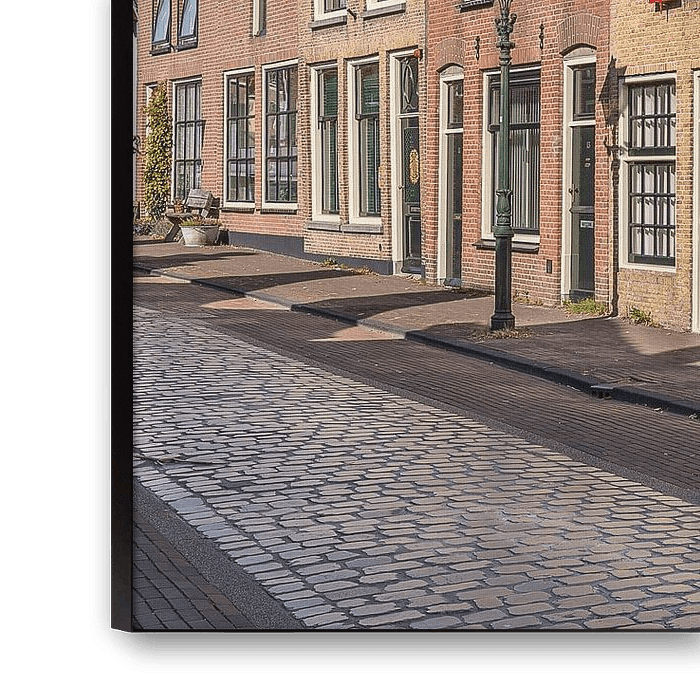 Auf diesem Bild zeigt sich die Kaaistraat als eine ruhige Straße voller Geschichte. Die historischen Fassaden mit ihrem warmen Backstein und den sorgfältigen Details spiegeln die Seele der Stadt wider: zurückhaltend, aber voller Charakter.