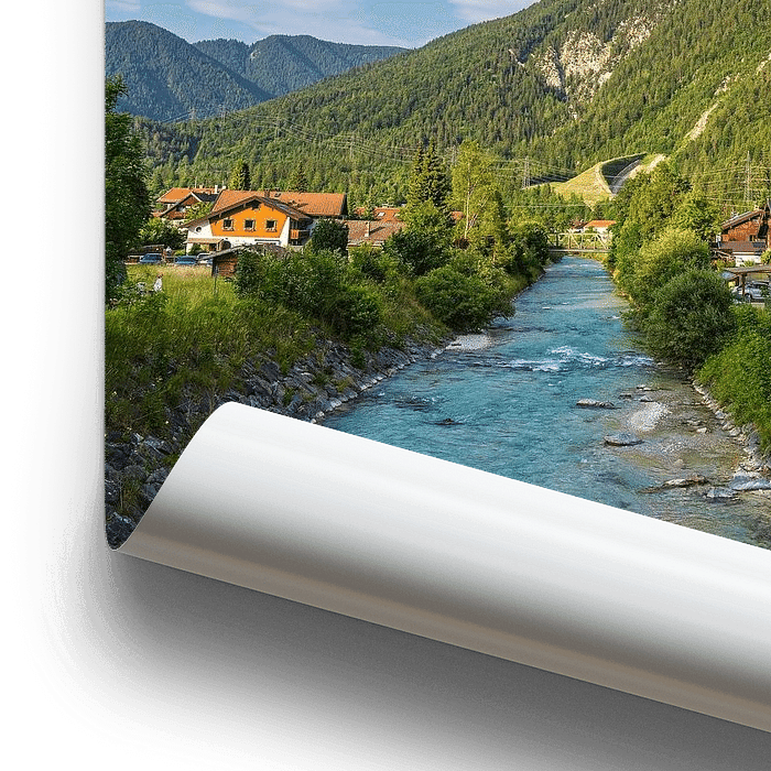 Bestelle dieses Landschafts-Wandbild Der Fluss Isar bei Mittenwald in Bayern von Rico Ködder als Reproduktion auf Leinwand, Alu-Dibond, als Poster, Fototapete oder Acrylglasbild.