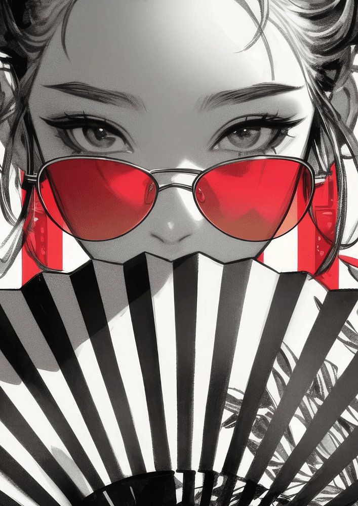 Ein traditioneller Handfächer trifft auf zeitgenössischen Stil in dieser atemberaubenden Verschmelzung von japanischem Erbe und moderner Mode.