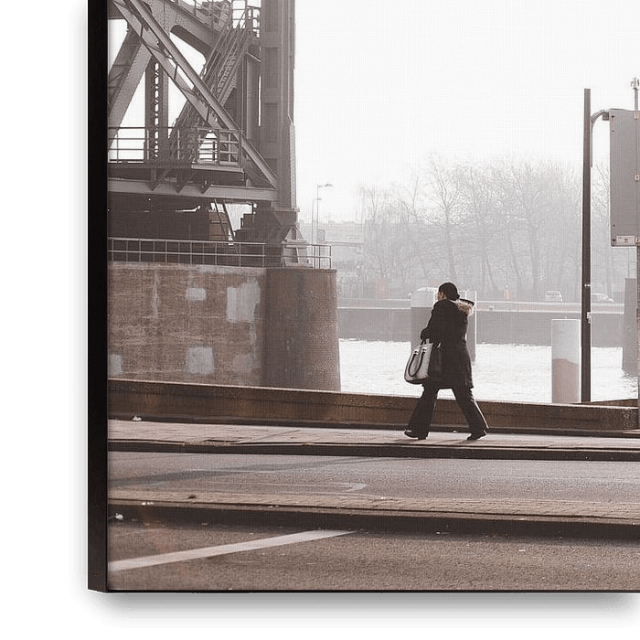 Bestelle dieses Rotterdam-Wandbild Der Nebel lichtet sich an der Brücke De Hef in Rotterdam von Moniek Kuipers als Reproduktion auf Leinwand, Alu-Dibond, als Poster, Fototapete oder Acrylglasbild.